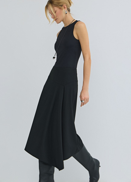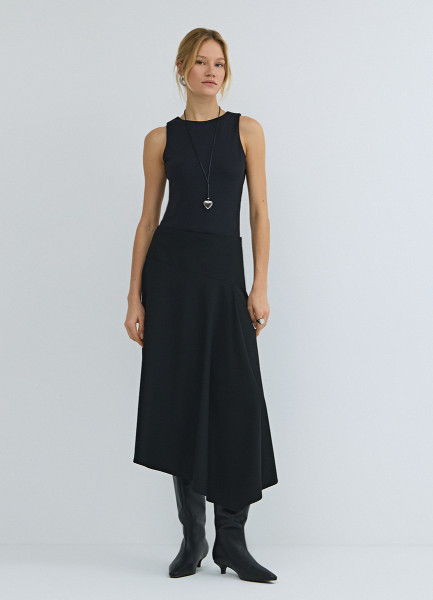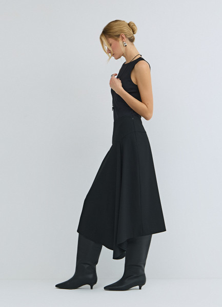 Асимметричная юбка миди, Черный
