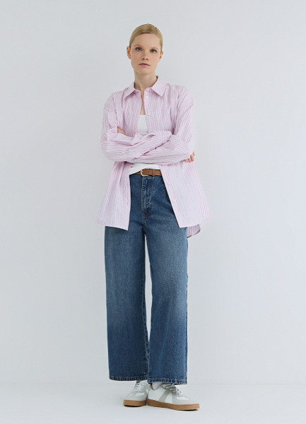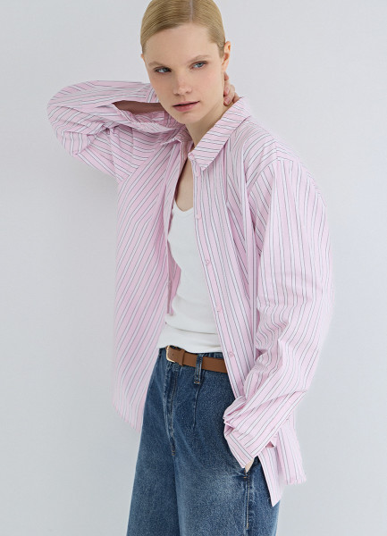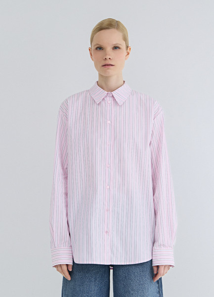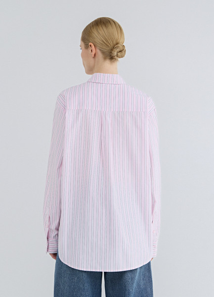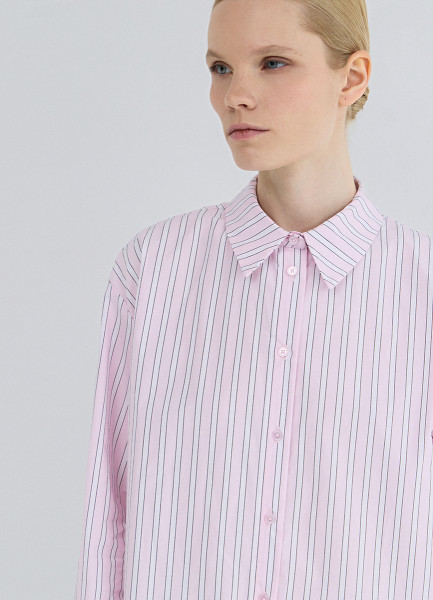 Рубашка в полоску из хлопка, Розовый