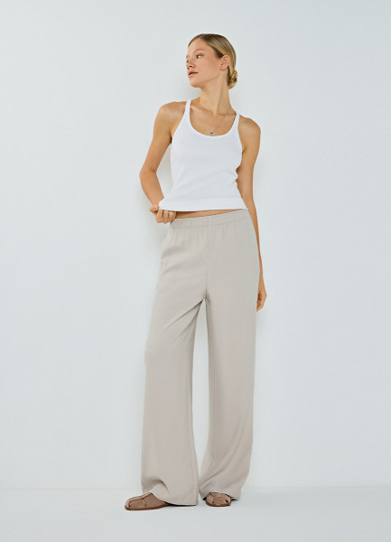 Прямые брюки с поясом на резинке, Бежевый