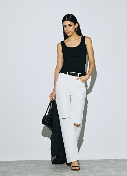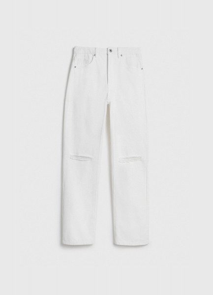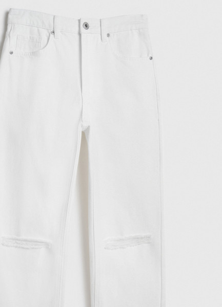 Прямые джинсы с разрезами на коленях, Белый