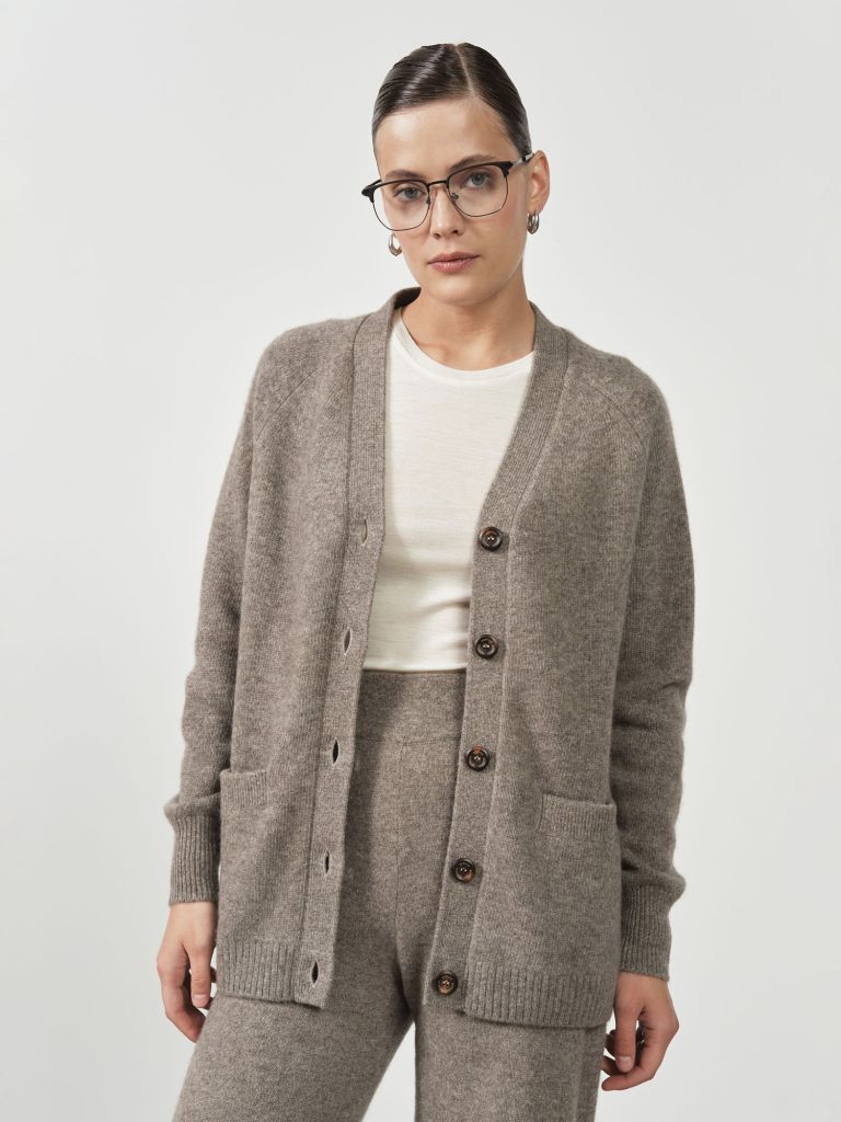 Изысканный кардиган из 100% шерсти верблюжонка в натуральном рыжем цвете – это драгоценное приобретение для ценителей премиальных натуральных материалов. Шерсть молодого верблюда считается одним из самых элитных и редких текстильных волокон в мире, соединяющим в себе исключительные теплозащитные свойства с невероятной мягкостью и легкостью.Природный рыжеватый оттенок верблюжьей шерсти придает изделию благородную эстетику и подчеркивает его натуральное происхождение. Особенность шерсти верблюжонка в том, что она в два раза теплее овечьей при вдвое меньшем весе, что делает кардиган идеальным выбором для холодного времени года без утяжеления образа.Классический крой модели 4102 с элегантной линией силуэта делает кардиган универсальным элементом как повседневного, так и делового гардероба. Изделие отлично сочетается с джинсами, брюками, юбками различных фасонов и платьями, позволяя создавать разнообразные стильные комбинации.Шерсть верблюжонка обладает уникальными терморегулирующими свойствами – она согревает в холод и не перегревает в помещении. Благодаря природной структуре волокна, материал практически не электризуется, обеспечивает полезное сухое тепло и не собирает пыль. Натуральное происхождение делает изделие гипоаллергенным и экологически чистым.Приобретите этот роскошный кардиган из шерсти верблюжонка сегодня и откройте для себя непревзойденный комфорт и элегантность натурального премиального материала. Это инвестиция в качество, которое будет радовать вас на протяжении многих лет.