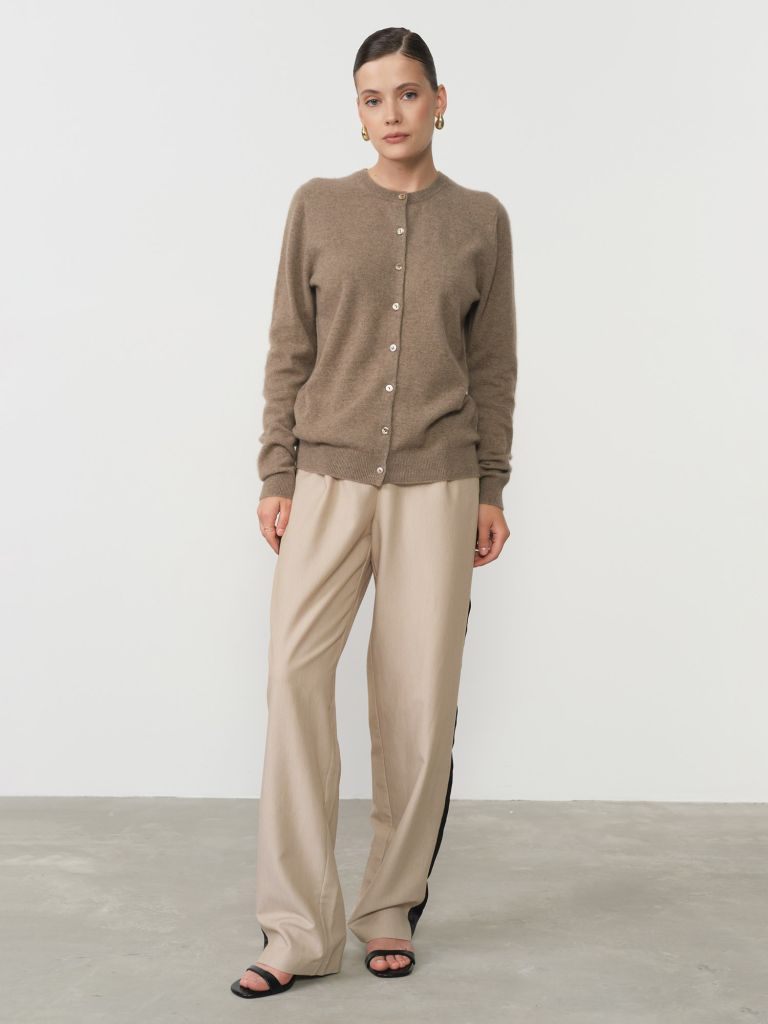 Изысканный кардиган из 100% натурального кашемира в благородном оттенке капучино – воплощение утонченной элегантности и непревзойденного комфорта для вашего гардероба. Этот премиальный предмет одежды создан из высококачественного кашемирового волокна, известного своей исключительной мягкостью и приятными тактильными ощущениями.Природные свойства кашемира делают этот кардиган идеальным выбором для различных погодных условий. Элегантный крой с классическими линиями создает безупречный силуэт, подчеркивающий женственность и изящество фигуры. Функциональная застежка на пуговицы позволяет адаптировать образ под различные ситуации – от деловых встреч до неформальных мероприятий. Продуманный дизайн делает кардиган универсальным элементом как повседневного, так и офисного стиля.Благородный оттенок капучино – это воплощение сдержанной элегантности, которая никогда не выходит из моды. Этот нейтральный, теплый тон идеально сочетается с широкой цветовой палитрой, от базовых черного и белого до насыщенных акцентных цветов. Кашемировый кардиган – это долгосрочная инвестиция в качественный и стильный гардероб. При бережном уходе он сохраняет свои превосходные свойства и безупречный внешний вид на протяжении многих лет. Пополните свою коллекцию этим роскошным предметом одежды, который станет неизменным спутником в создании элегантных и комфортных образов для любого случая и сезона.