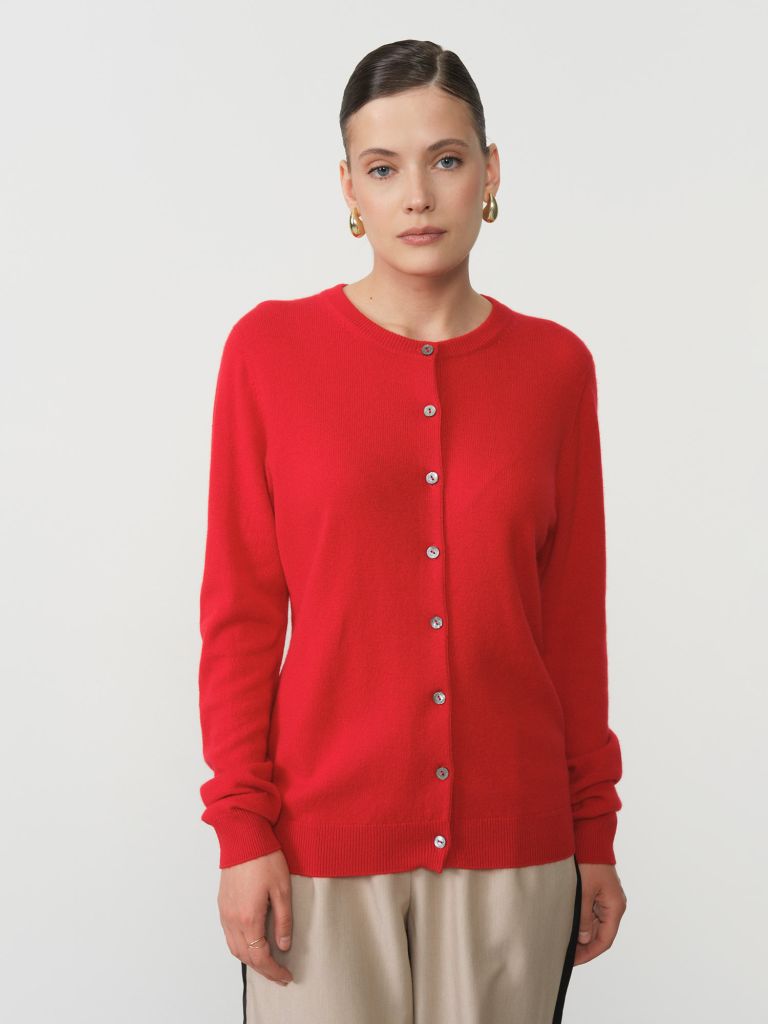 Роскошный кардиган из 100% натурального кашемира в насыщенном красном цвете – смелое и элегантное решение для модного и комфортного гардероба. Этот премиальный предмет одежды изготовлен из высококачественного кашемирового волокна, обеспечивающего непревзойденную мягкость и приятные тактильные ощущения.Уникальные природные свойства кашемира делают этот кардиган исключительно комфортным для ношения. Материал обладает отличной терморегуляцией, сохраняя тепло в прохладную погоду и не создавая перегрева в помещении.Классический крой кардигана с продуманными деталями создает безупречный силуэт, подчеркивающий женственность и элегантность. Функциональная застежка на пуговицы позволяет варьировать способы ношения – от полностью застегнутого для более строгого образа до слегка распахнутого для создания непринужденного стиля.Насыщенный красный цвет придает образу выразительность и индивидуальность, мгновенно привлекая внимание. Этот яркий оттенок идеально сочетается с нейтральными тонами – черным, белым, бежевым, а также с джинсовой тканью, создавая эффектные и стильные комбинации.Кашемировый кардиган – это инвестиция в качество и стиль, которая не теряет актуальности с течением времени. При правильном уходе он сохраняет свой насыщенный цвет и исключительные свойства на протяжении многих лет. Дополните свой гардероб этим ярким и роскошным предметом одежды, который подарит вам уверенность и комфорт в любой ситуации.