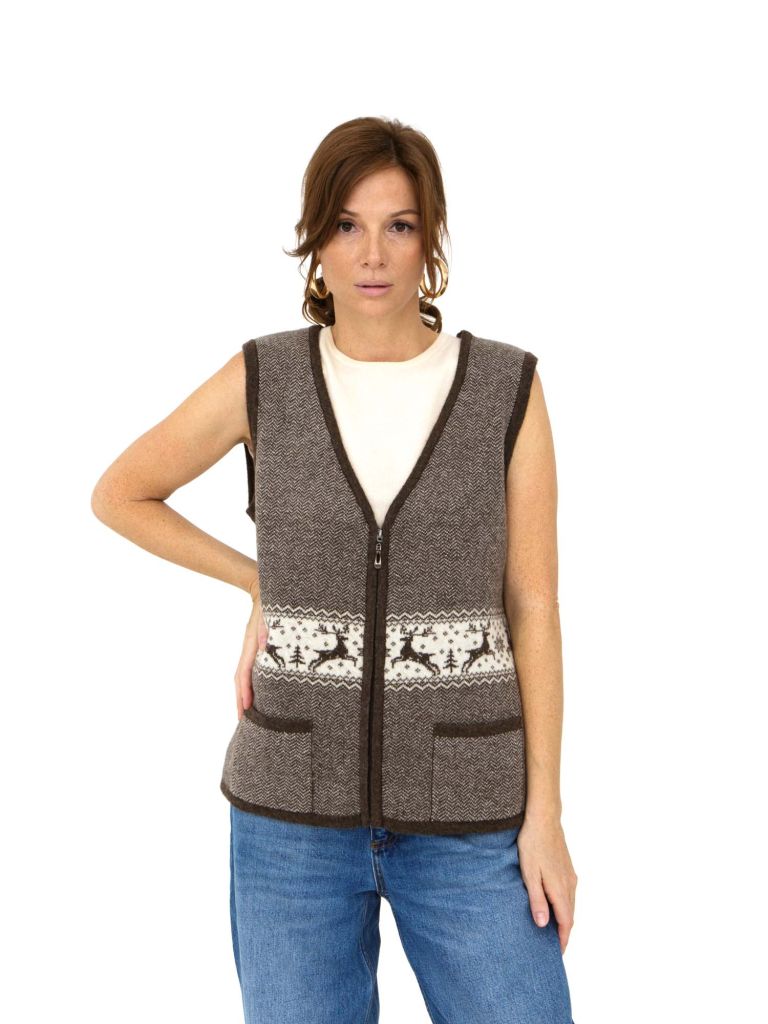 Женский жилет из 100% натуральной шерсти с рисунком коричневого цвета – практичное и стильное дополнение вашего гардероба. Изготовленный из высококачественной шерсти, этот жилет отличается превосходными теплоизоляционными свойствами. Природная структура шерстяных волокон обеспечивает отличную воздухопроницаемость и регуляцию температуры – в нем тепло в холод и комфортно в помещении.Удобная застежка-молния и функциональный дизайн делают жилет универсальным для повседневной носки. Он отлично сочетается с рубашками, свитерами и футболками, позволяя создавать многослойные образы. Коричневый цвет с оригинальным рисунком придает изделию особую привлекательность и стильный вид.Этот шерстяной жилет – оптимальное решение для межсезонья и прохладных летних вечеров. Его универсальность и натуральный состав оценят все, кто предпочитает экологичную и комфортную одежду. Подарите себе сочетание практичности и элегантности – жилет из 100% шерсти станет вашим надежным спутником на долгие годы.