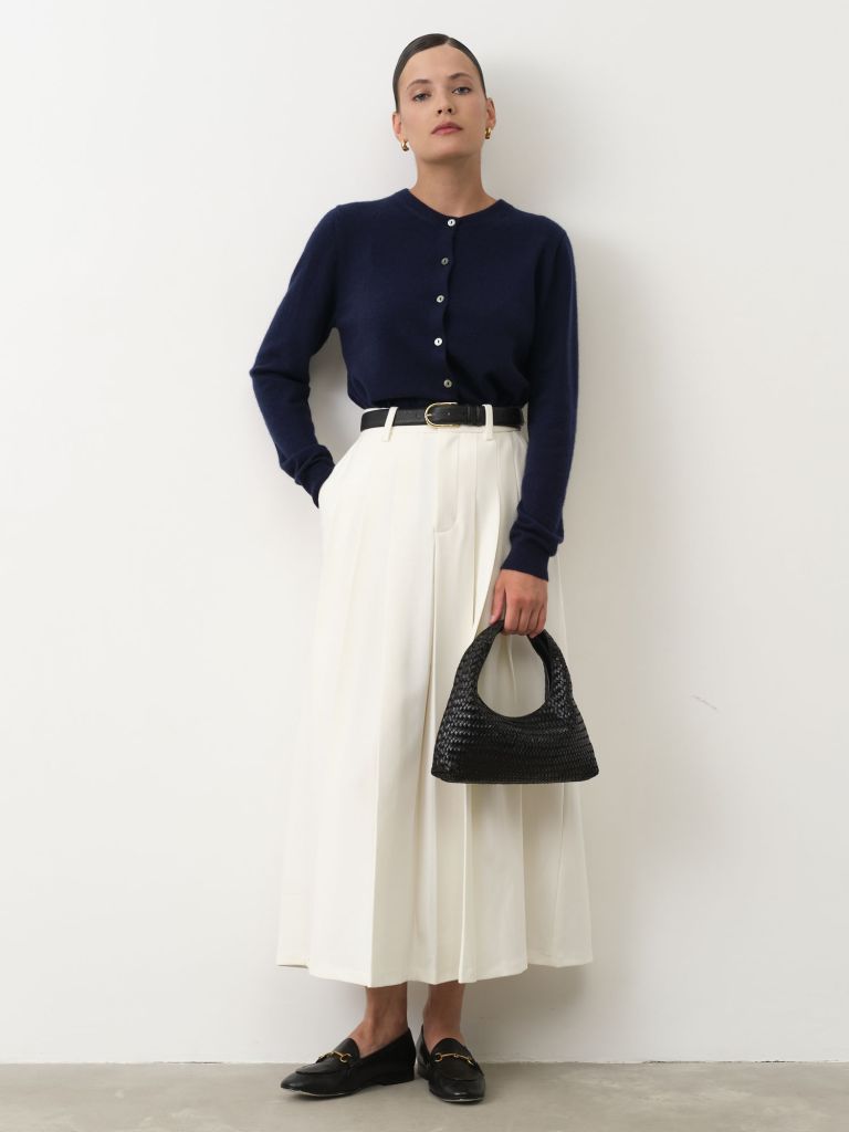 Элегантный кардиган из натурального кашемира с классической застежкой на пуговицы. Мягкий, легкий и теплый, он идеально подходит для повседневных и деловых образов, обеспечивая комфорт в течение всего дня.Материал:100% кашемир — натуральное волокно с высокой теплоизоляцией, мягкое на ощупь и приятное к коже.Цвет:Синий — универсальный и благородный оттенок, легко сочетается с базовым и светлым гардеробом.Дизайн:Прямой силуэт, круглый вырез горловины, длинные рукава с аккуратными манжетами, застежка на пуговицы спереди.Посадка:Классическая, комфортная, подходит для многослойных образов.Сезон:Осень, зима, весна.Уход:Рекомендуется ручная стирка в холодной воде или деликатная химчистка. Сушить в горизонтальном положении, не выкручивать.Готовую памятку по уходу вы можете прочитать у нас в блоге.