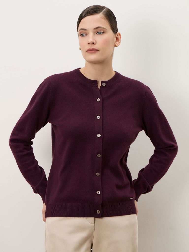 Сливовый кардиган из кашемира 08478 — это глубокий, спокойный акцент в гардеробе. Он мягко ложится по фигуре, не утяжеляет силуэт и создаёт ощущение уюта. Цвет добавляет образу насыщенности, но остаётся сдержанным и благородным.