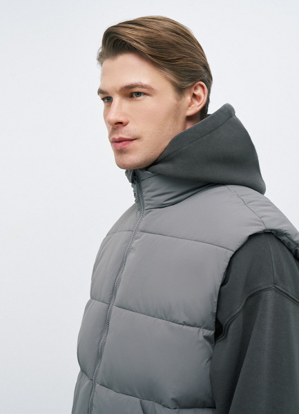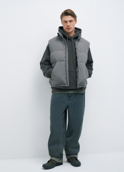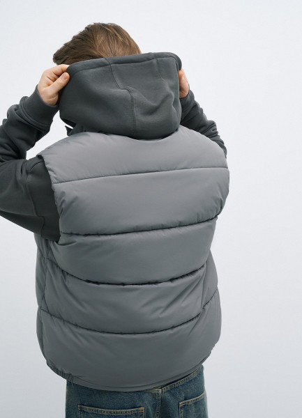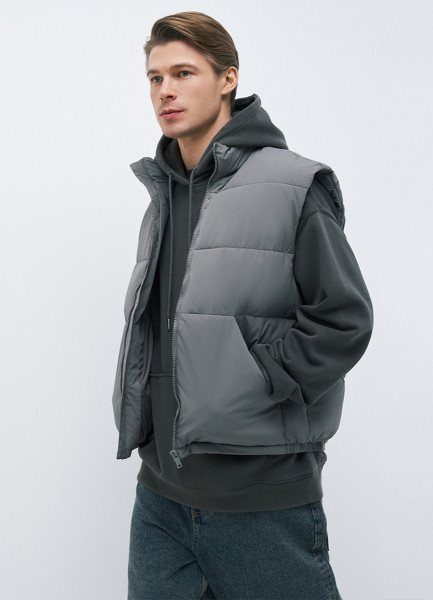 Жилет с воротником-стойкой и накладными карманами, Черный