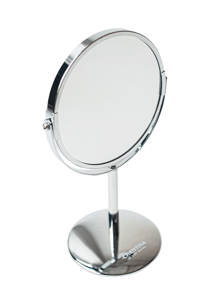 Настольное зеркало Christina – необходимый аксессуар дома или в кабинете косметолога. Его удобно использовать для качественного самостоятельного нанесения продуктов или, если вы косметолог, предлагать клиенту для оценки результата от процедуры. Зеркало имеет 2 стороны, одна из которых обеспечивает увеличение в 2 раза, что позволяет лучше рассмотреть детали. Дизайн аксессуара максимально лаконичен – он впишется абсолютно в любой интерьер. Материал: железо, стекло. Размеры: 16,5 см х 28 см, диаметр зеркала – 15 см.