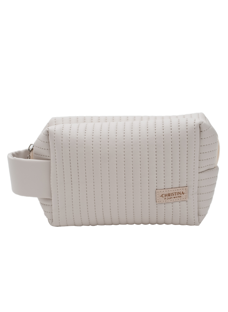 Косметичка молочного оттенка в минималистичном дизайне – незаменимая вещь дома и в путешествии. Она очень вместительная – сразу для всех средств ухода. Открывается и закрывается с помощью застежки-молнии, есть удобная петля сбоку. Материал – экокожа. Размеры: 18 см х 7,5 см х 12, 5 см.