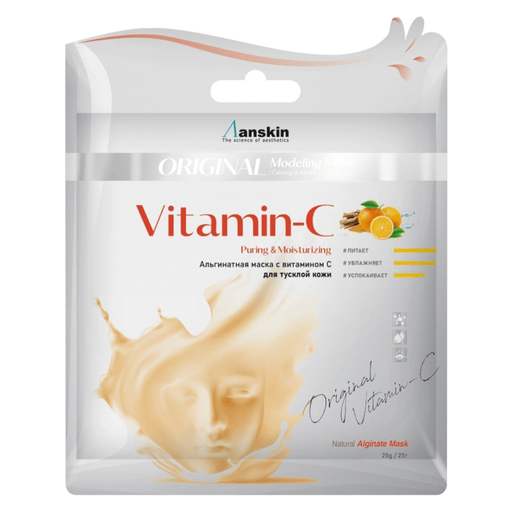 Альгинатная маска c витамином С Anskin Vitamin-C Modeling Mask осветляет пигментные пятна и постакне, устраняет тусклый тон и возвращает лицу здоровое сияние. Запускает синтез коллагена и эластина, поддерживает эластичность кожи и препятствует птозу. Содержит экстракт солодки, аллантоин и гиалуроновую кислоты.