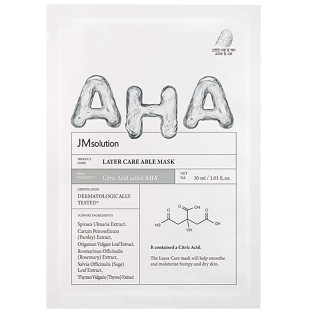 Выравнивающая тканевая маска с лимонной кислотой JMsolution Layer Care Able Mask полирует и выравнивает рельеф, смягчает огрубевшие участки кожи, делает цвет лица однородным, избавляя от тусклости и покраснений. Интенсивно увлажняет, повышает проницаемость тканей и предупреждает дегидратацию. Содержит морскую воду, экстракт вяза, чёрной фасоли, душицы.