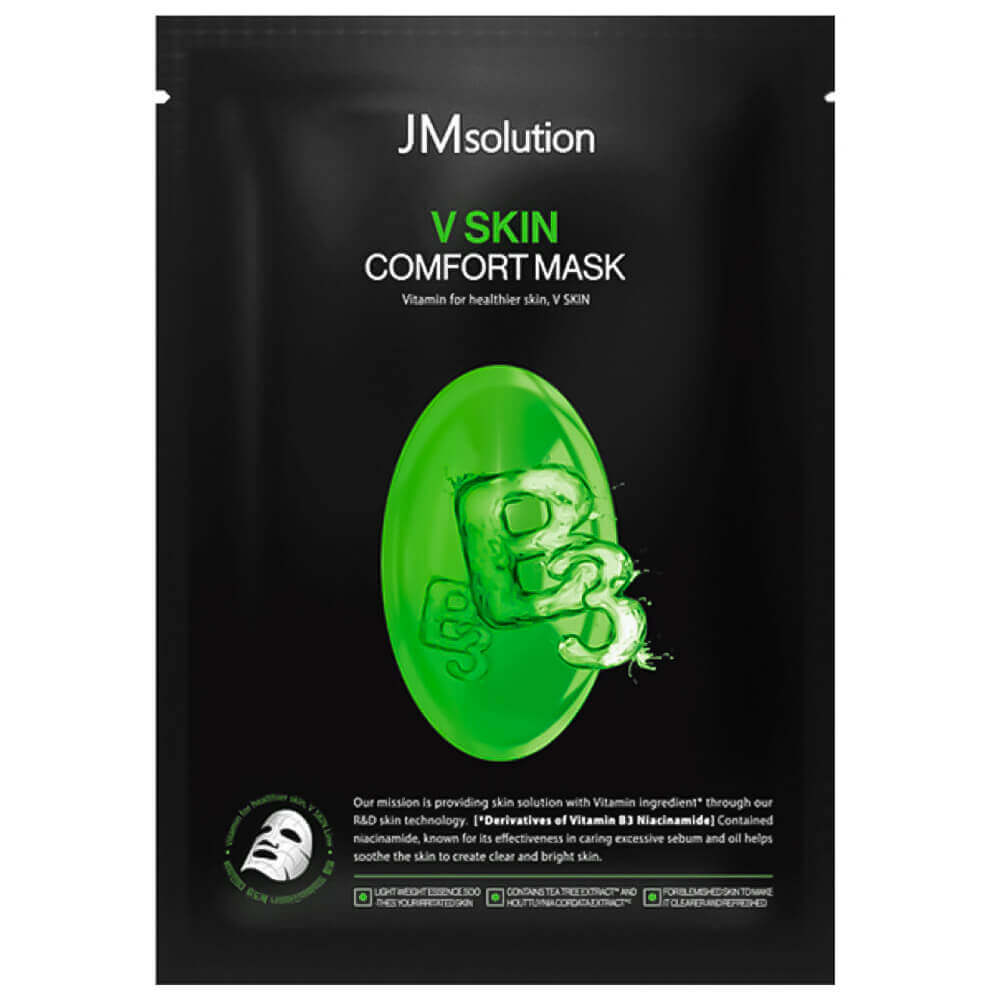 Тканевая маска для сияния кожи с витамином B3 JMsolution V Skin Comfort Mask мягко осветляет общий тон кожи, борется с тусклостью и покраснениями. Интенсивно увлажняет, тонизирует, освежает и возвращает здоровое сияние. Отлично подходит в качестве средства для экспресс-восстановления. Содержит комплекс гиалуроновой кислоты, экстракты чайного дерева и хауттюйнии, аргинин и бетаин.