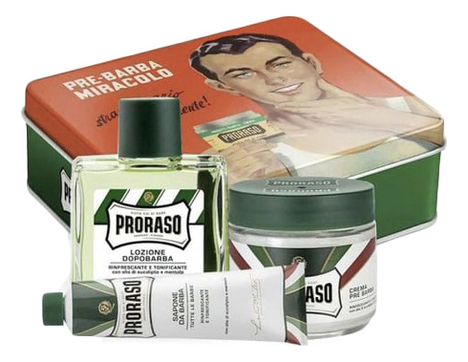 От производителя:Стильный и изысканный набор для бритья Gino, который включает в себя крем до бритья, крем для бритья и бальзам после бритья, от знаменитого европейского бренда по производству косметики для мужчин Proraso.Классическая, так называемая «зеленая» линейка косметических средств содержит только натуральные эфирные масла и растительные ингредиенты, которые были выращены и собраны в экологически чистых уголках мира.Эвкалиптовое масло обладает уникальным противовоспалительным и регенерирующим свойством, обеззараживает и заживляет любые микропорезы на коже лица. Ментол же освежит и успокоит кожу, предотвращая раздражение воспаление.Крем до бритья эффективно увлажнит кожу лица, а использование уникального крема для бритья обезопасит лицо от порезов, благодаря великолепному скольжению лезвий бритвы. Бальзам с ароматом ментола и эвкалипта остудит и освежит вашу кожу на конечном этапе процедуры.Стильный подарочный набор в фирменной упаковке.Способ применения:Крем до бритья: Нанесите прешейв на области бритья, затем, не смывая средство, нанесите гель или пену для бритья.Крем для бритья: Нанести средство плотным слоем на щетину, выждать 1-2 минуты и провести процедуру бритья. Тщательно смыть остатки средства.Бальзам после бритья: После процедуры бритья нанесите средство тонким равномерным слоем, распределите по коже.