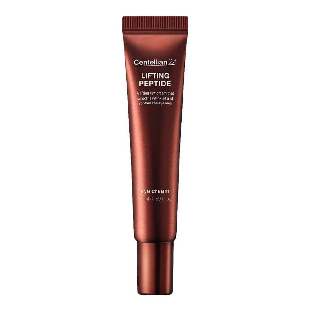 Пептидный крем для век с лифтинг-эффектом Centellian24 Lifting Peptide Eye Cream глубоко питает и восстанавливает, укрепляет тонкую кожу в области вокруг глаз, повышает эластичность и упругость. Разглаживает мимические морщины и препятствует их образованию, замедляет процесс старения. Осветляет тёмные круги, обеспечивает противоотёчное действие. Содержит 42 пептида, 5 растительных протеинов, экстракт критского папоротника и фитоплацента сои.