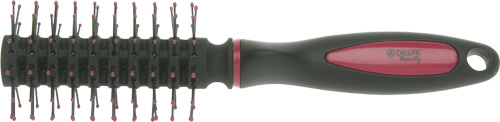 Брашинг Dewal Beauty из серии "Черная фуксия" DBF6311 —облегчает и упрощает укладку, позволяет создавать прикорневой объем. Расческа-брашинг выполнена из качественного пластика в черной расцветке со вставками цвета фуксия.