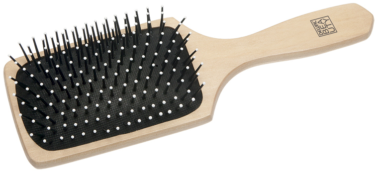 Пластиковые штифты на мягкой подушке, не электризуют и мягко расчесываеют волосы , придавая массажный эффект коже головы.