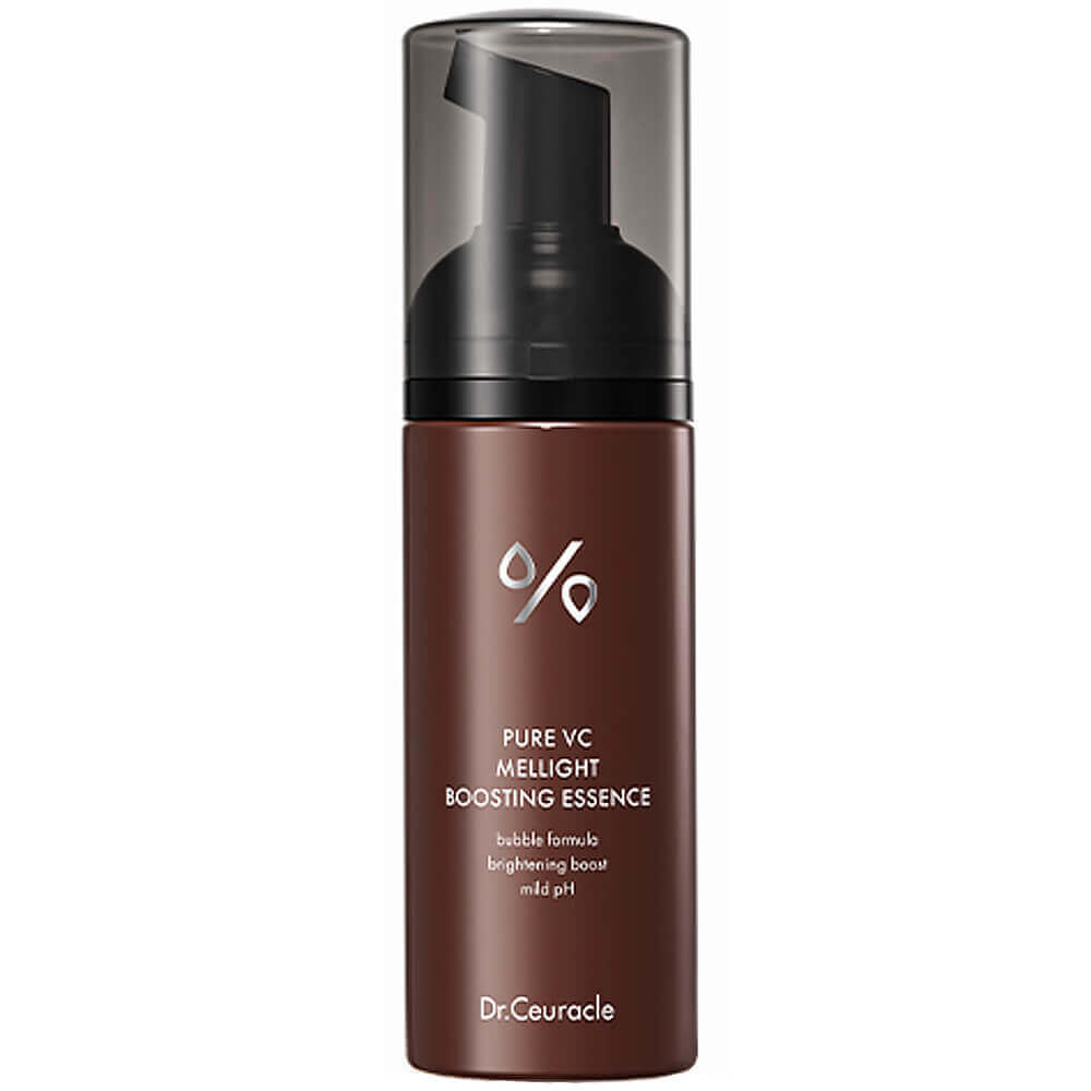 Пузырьковая бустер-эссенция с витамином С Dr.Ceuracle Pure VC Mellight Boosting Essence устраняет тусклость и осветляет пигментацию, выравнивает тон кожи и дарит здоровое сияние. Стимулирует выработку коллагена, повышает упругость, насыщает кожу антиоксидантами. Средство с необычной пузырьковой текстурой повышает эффективность последующего ухода, готовит к макияжу. Содержит 21.2% комплекса витамина С, гидролат облепихи, ниацинамид, идебенон, глутатион, феруловую кислоту, фуллерен, экстракты центеллы и инжира, масла ромашки и розмарина. Уровень pH 5.2.