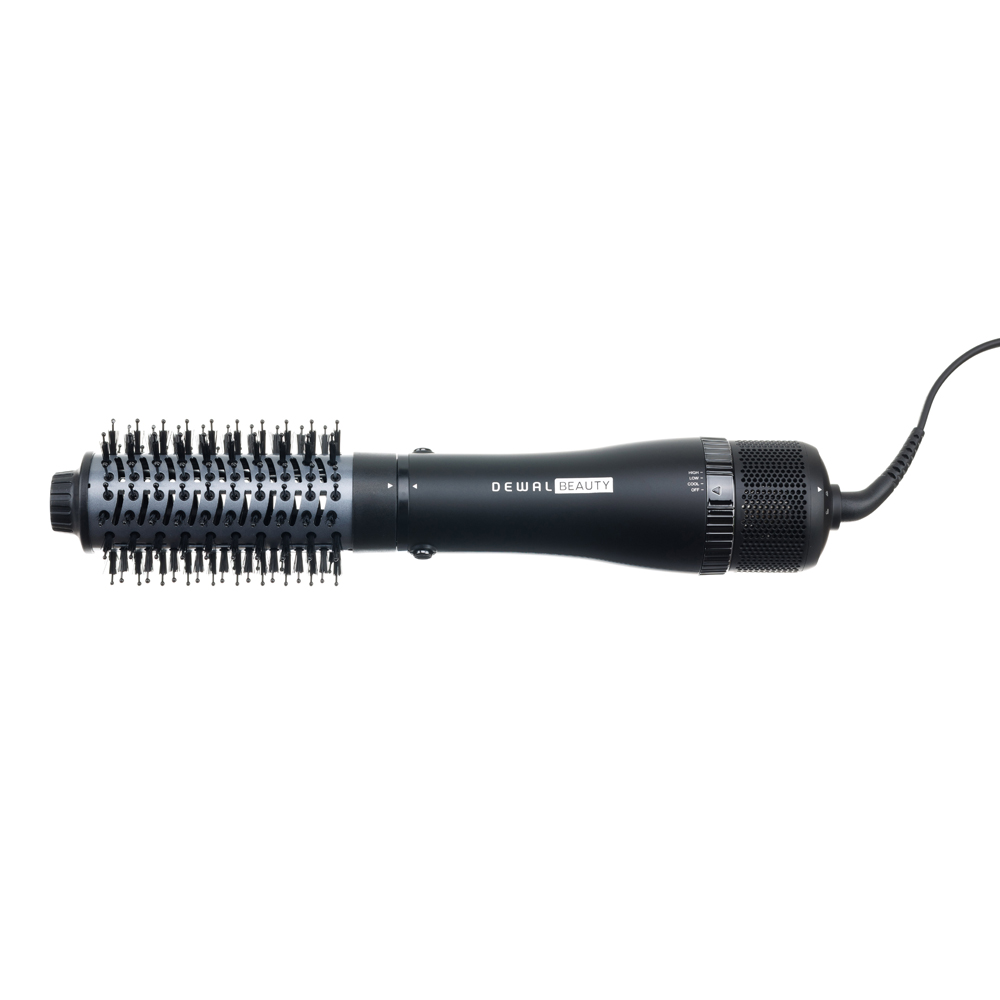 Фен-щетка Dewal Beauty HB4001 доступна с насадкой 43 мм и оснащена вращающимся шнуром, что предотвращает его запутывание.