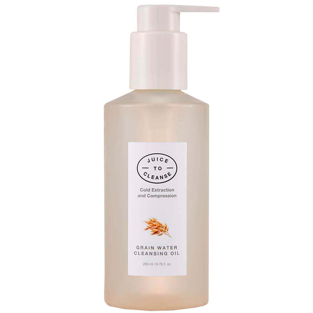 Лёгкое увлажняющее гидрофильное масло с рисом Juice To Cleanse Grain Water Cleansing Oil имеет невесомую текстуру, которая отлично распределяется по коже, смывая водостойкий и пигментированный макияж, оставляя ощущение увлажнённости после умывания. Продукт препятствует появлению пигментации, очищает поры, удаляет ороговевшие клетки, осветляет сальные нити и чёрные точки. Формула на 95% состоит из компонентов, ухаживающих за кожей. Содержит масла рисовых отрубей и овса, экстракт лимона, растительный комплекс Platowhite-C, сок алоэ и кокоса, арбутин, экстракт гриба мацутакэ и цветной капусты.