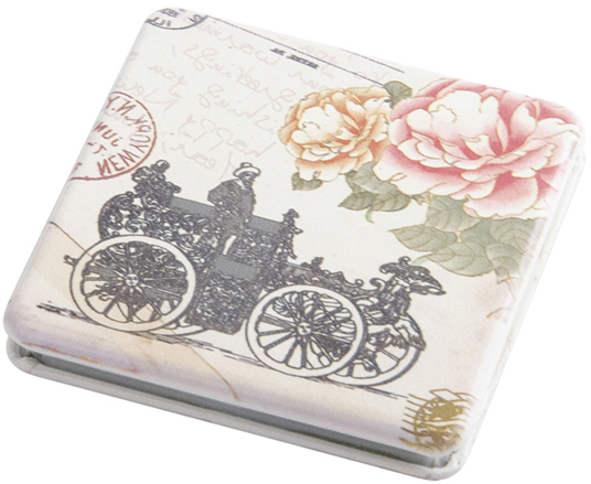 Зеркало станет роскошным подарком для любого случая. Его можно брать в дорогу, зеркало всегда будет под рукой. Компактный размер аксессуара – 60 х 60 х 0,9 мм, позволяет его удобно хранить как в сумочке, так и в кармане одежды.
