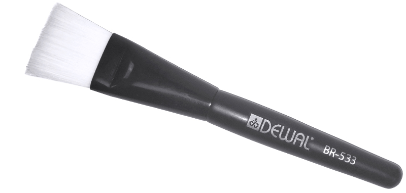 Кисть BR-533 для нанесения на лицо кремовых масок. Плоский кончик с упругим белым ворсом позволяет быстро и аккуратно распределить косметические средства по коже, создавая тонкий равномерный слой. При соприкосновении с лицом тонкие щетинки обеспечивают эффект легкого массажа. Кисть очень легко моется и не теряет форму.