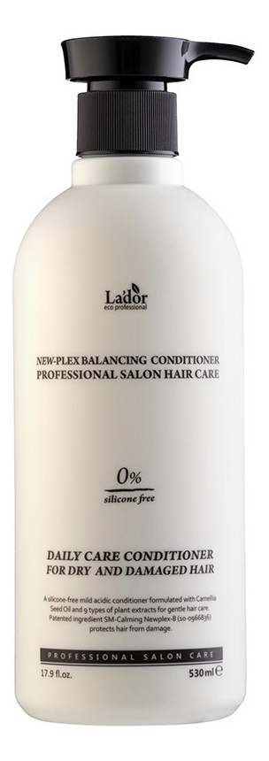 От производителя:Мягкий бессиликоновый кондиционер New-Plex Balancing Conditioner из каталога La`dor предназначен для ухода с успокаивающим эффектом. Средство дисциплинирует пряди после мытья, облегчает распутывание и укладку, одновременно восстанавливает здоровый гидролипидный баланс, нормализует работу сальных желез, благотворно влияет на состояние кожи головы и волосяных луковиц.Формула с маслом камелии, экстрактами зеленого чая, центеллы, белой шелковицы и сосны подходит для ухода за поврежденными и обезвоженными волосами, чувствительной или раздраженной кожей головы. Натуральные компоненты успокаивают, восстанавливают, повышают защищенность шевелюры к внешним воздействиям.Способ применения:Нанесите кондиционер на вымытые и чуть подсушенные волосы, распределите по всей длине и оставьте на несколько минут, затем смойте тёплой водой. Состав:Мягкий бессиликоновый кондиционер с успокаивающим эффектом New-Plex Balancing Conditioner от La`dor содержит Water, Cetearyl Alcohol, Behentrimonium Chloride, Paraffin, Dipropylene Glycol, Glycerin, Sodium Benzoate, Phenoxyethanol, Guar Hydroxypropylitrimonium Chloride, Betaine, Citric Acid, PPG-3 Caprylyl Ether, Butylene Glycol, Polyquaternium-7, Camellia Japonica Seed Oil, 1,2-Hexanediol, Camellia Sinensis Leaf Extract, Morus Alba Bark Extract, Pinus Densiflora Leaf Extract, Sodium Hyaluronate, Centella Asiatica Extract, Chrysanthemum Indicum Flower Extract, Rhus Semialata Gall Extract, Scutellaria Baicalensis Root Extract, CI 19140, Lonicera Japonica (Honeysuckle) Flower Extract, Salicornia Herbacea Extract, Ethylhexylglycerin, Fragrance, Hexyl Cinnamal, Alpha-Isomethyl Ionone, Citronellol, Linalool, Coumarin, Limonene, Geraniol, Eugenol.