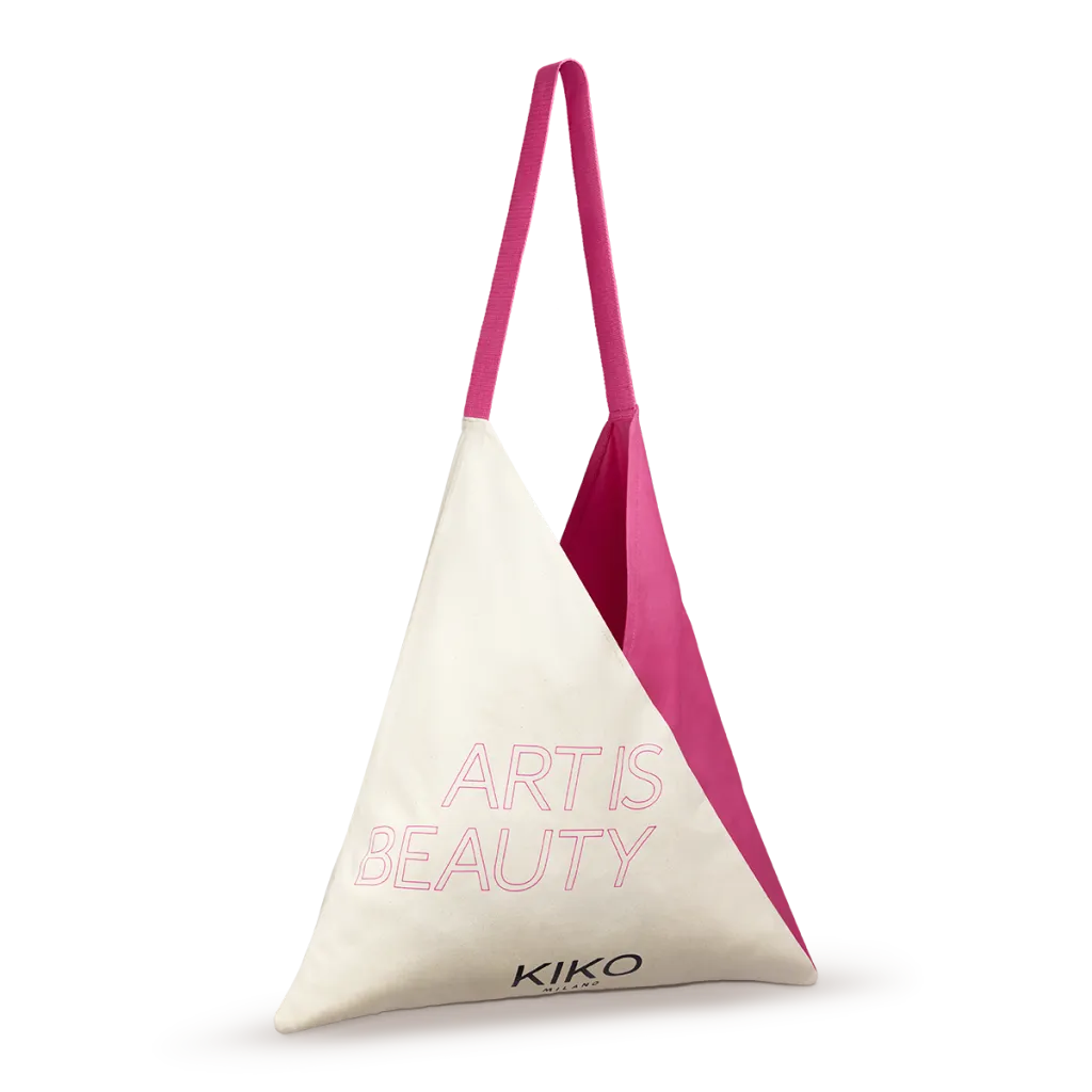 Хлопковая сумка-тоут. Эта необычная модель треугольной формы максимально практична, благодаря большому размеру и двойной ручке - все, что нужно, чтобы сделать эту сумку для покупок абсолютным must-have*. ; В чем ее особенность? - изготовлена из 100% переработанного хлопка, мягкая и прочная; - очень вместительная, идеально подходит для хранения косметики, средств по уходу за кожей, ноутбука и многого другого; - отлично подходит для ношения через плечо; - великолепные, яркие детали культового дизайна, вдохновленного манифестом красоты KIKO. ВЫСОТА: 54 СМ; ШИРИНА: 52 СМ