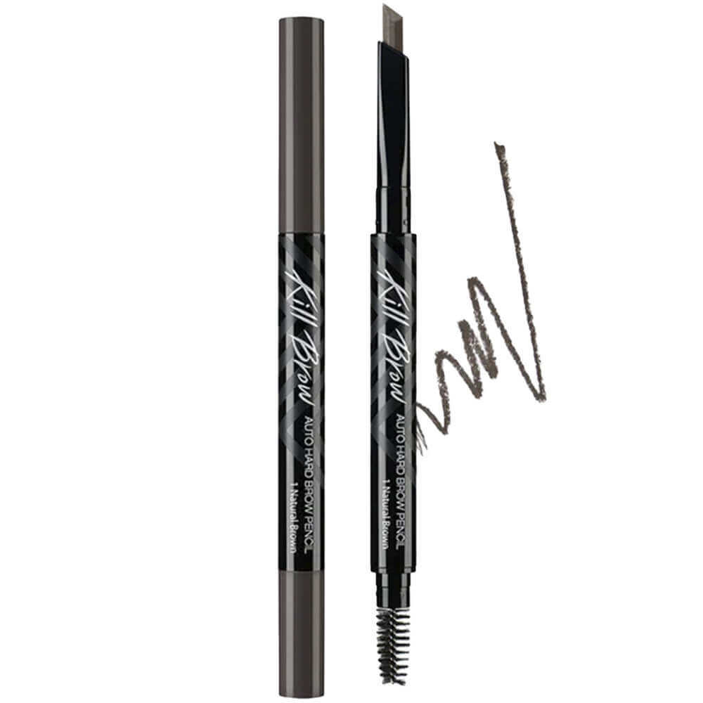 Карандаш для бровей CLIO Kill Brow Auto Hard Brow Pencil в натуральном каштановом оттенке 1 Natural Brown подходит для естественного макияжа. Обладает высокой стойкостью, не течёт и не смазывается в течение дня. Уникальная форма шестигранного грифеля позволяет легко регулировать толщину грифеля, позволяя рисовать как тонкие, так и густые брови, а специальная щёточка придаёт им нужную форму.