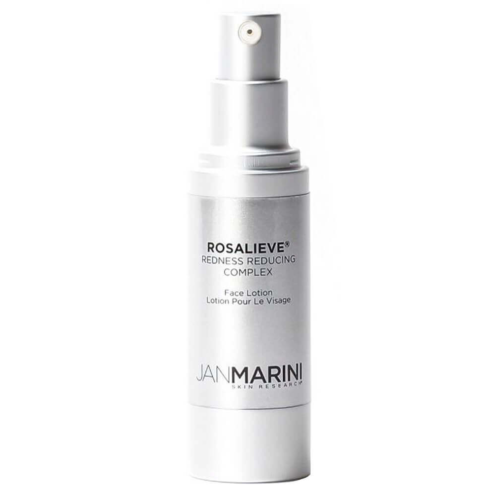 Крем против покраснений и розацеа с азелаиновой кислотой Jan Marini Rosalieve борется с покраснением в области носа, щёк и лба, уменьшает видимость сосудистой сетки и успокаивает кожу. Средство укрепляет стенки сосудов и снимает воспаление, смягчая и увлажняя. Содержит 5% азелаиновой кислоты, тетрапептид-14, экстракты зелёного, белого и красного чая, пантенол.