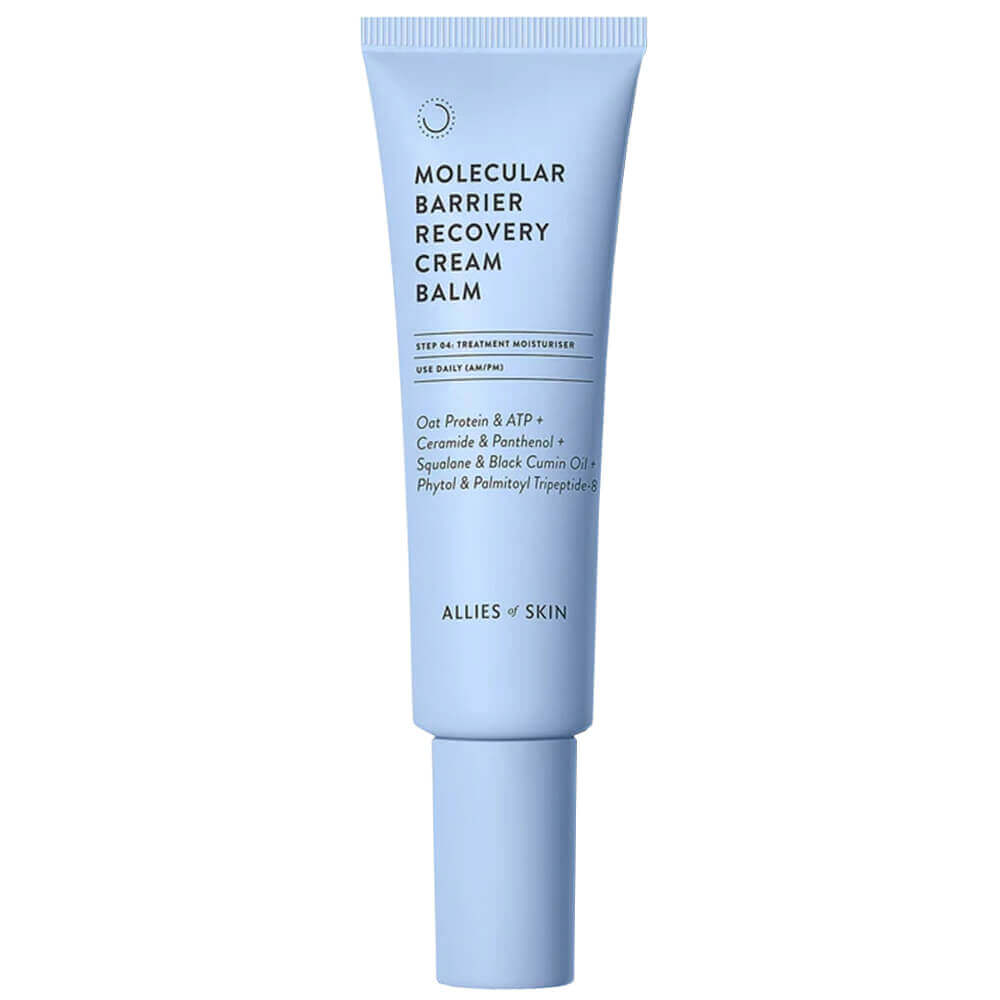Крем для молекулярного восстановления кожи Allies Of Skin Molecular Barrier Recovery Cream Balm смягчает, успокаивает и заживляет повреждённую кожу, отлично восстанавливает после пилингов и других травмирующих процедур, укрепляет естественный защитный барьер. Дарит комфорт чувствительной коже, снимает раздражение и покраснение. Имеет нежную текстуру бальзама, который тает на коже. Содержит 2% комплекса MossCellTec™, а также протеины овса, пантенол, пальмитоил трипептид-8, церамиды, сквалан, аденозинтрифосфат (ATP) и масло чёрного тмина.