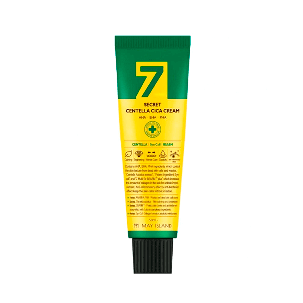 Восстанавливающий крем для проблемной кожи May Island Secret Centella Cica Cream AHA/BHA/PHA с 3-мя видами кислот, экстрактом центеллы азиатской и пептидами. Крем эффективно борется с воспалениями, лечит прыщи и акне и предотвращает их последующее появление. Осветляет пигментацию и постакне. Успокаивает раздраженную кожу, снимает покраснения, защищает от обезвоживания. Стимулирует выработку коллагена, замедляет процессы старения. Рекомендуется для проблемной и чувствительной кожи.