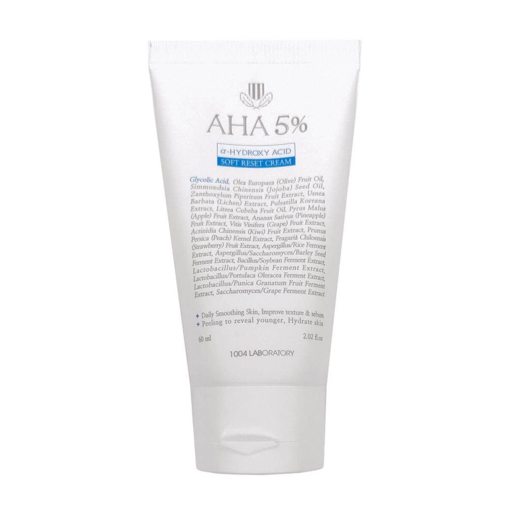 Обновляющий крем с AHA-кислотами 1004 Laboratory АНА 5 Soft Reset Cream эффективно отшелушивает ороговевшие клетки, способствует регенерации тканей. Выравнивает рельеф и улучшает тон кожи, регулирует выработку кожного себума и восстанавливает гидро-липидный баланс. Прекрасно увлажняет, отбеливает пигментацию и постакне. Содержит лактобактерии, трегалозу и гиалуроновую кислоту.