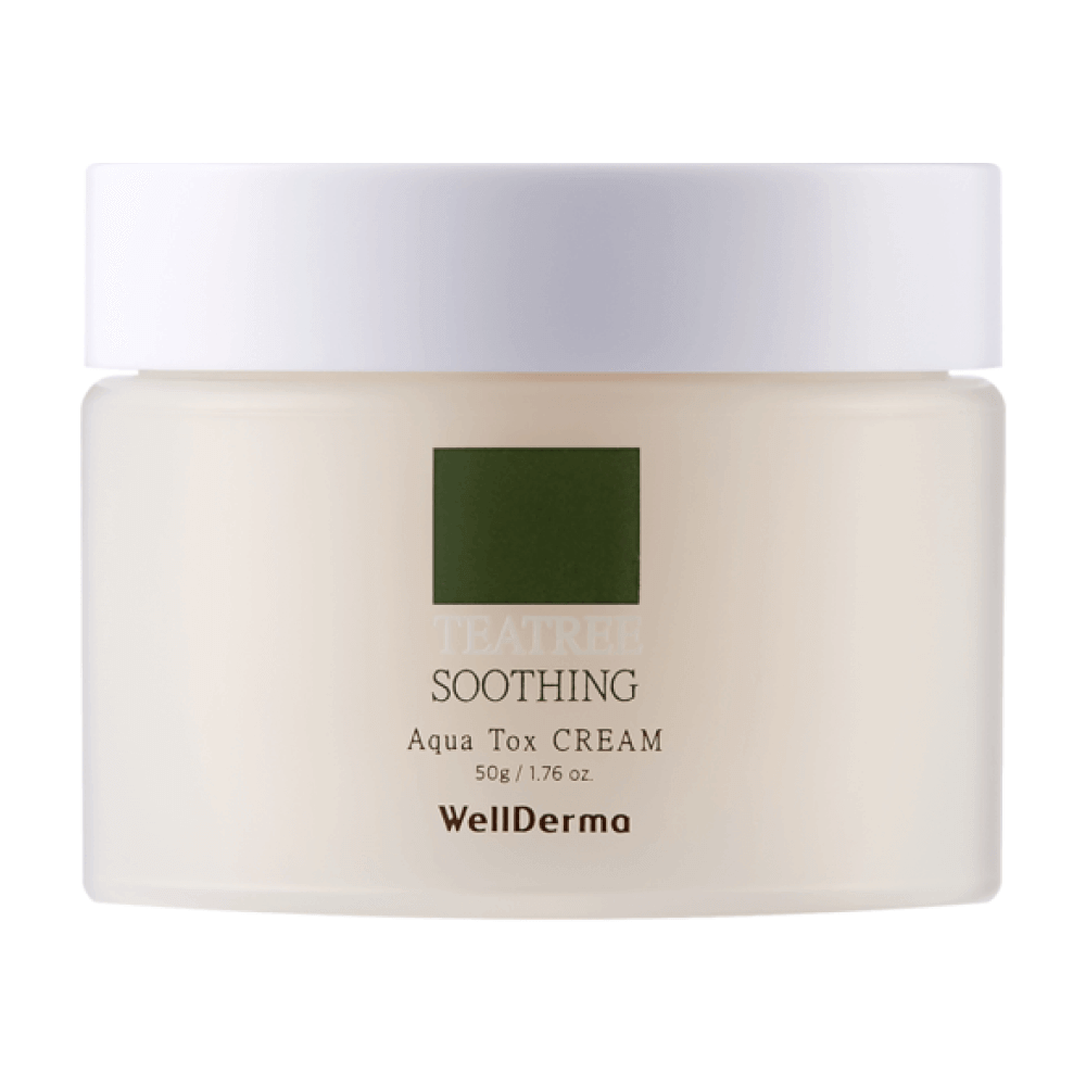 Антиоксидантный крем с чайным деревом WellDerma Teatree Soothing Aqua Tox Cream направлен на уменьшение жирности кожи, регулирует работу сальных желёз и матирует. Оказывает антибактериальное, увлажняющее и успокаивающее действие. Содержит экстракт какао, масло апельсиновой цедры, бергамота и лаванды.