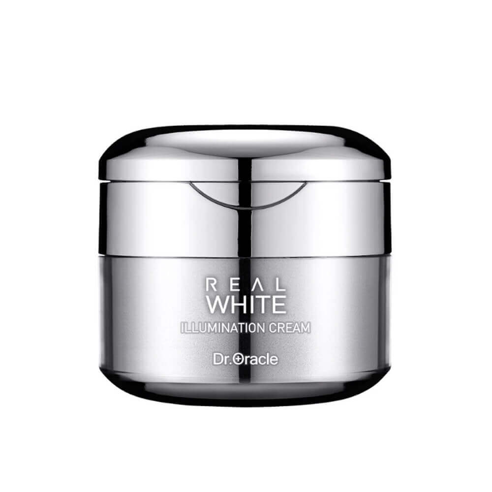 Крем для улучшения тона Dr. Oracle Real White Illumination Cream эффективно борется с тусклостью, выравнивает цвет лица, убирает покраснения, помогает осветлить пигментацию и возвращает естественное сияние. Оказывает увлажняющее действие, успокаивает раздражения и сокращает выработку меланина. Содержит ниацинамид, экстракт коры белой ивы, лотоса, розы и масло макадамии.