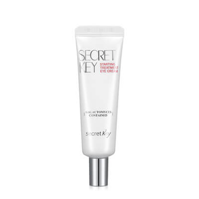 Многофункциональный антивозрастной крем для век Secret Key Starting Treatment Eye Cream глубоко увлажняет кожу, осветляет тёмные круги под глазами, повышает эластичность кожи, разглаживает морщины, делает взгляд ясным, светлым и открытым. Крем обогащен ферментированным экстрактом галактомисиса, ниацинамидом, аденозином, комплексом ценных масел, органическими экстрактами корня женьшеня, портулака, центеллы, алоэ вера.