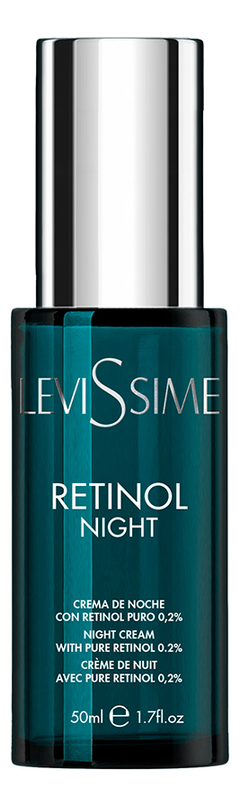 От производителя:Для активного ухода за возрастной, усталой, тусклой кожей лица эксперты Levissime предлагают воспользоваться ночным кремом Retinol Night с ретинолом 0,2%. Средство обладает омолаживающими, подтягивающими свойствами, оно выравнивает цвет лица, борется с нарушениями пигментации, разглаживает морщины.Биоактивный комплекс на базе ретинола стимулирует обменные и восстановительные процессы, совершенствует структуру эпидермиса и цвет лица, снабжает ткани мощными антиоксидантами, которые активно защищают покровы от разрушительного влияния внешних факторов и старения. Систематическая забота помогает стереть с кожи признаки увядания, разглаживает морщины, нормализует гидролипидный баланс, устраняет последствия акне и дневных стрессов. Способ применения:Использовать только в вечернее время! Наносить на предварительно очищенную кожу. В течение 3–4 недель использовать 1–3 раза в неделю, затем ежедневно. Курс — от 3 до 8 месяцев. Рекомендуется к использованию независимо от времени года.В дневном уходе обязательно использование дневного крема Advance Ultra Protect Daily Cream SPF 50+.Внимание! Обычно при первых применениях ретинол вызывает зуд, покраснение или даже шелушение. Это то, что известно как ретинизация или период адаптации кожи к ретинолу, и его необходимо пройти, чтобы он раскрыл все свои эффекты. Меры предосторожности: В случае раздражения кожи сократите частоту использования. Избегайте контакта с глазами, губами, раздраженными участками или ранами. В случае контакта промыть большим количеством воды. Все наши формулы прошли дерматологические испытания.Противопоказания: планирование беременности за 6 месяцев, во время беременности и период лактации!Состав:Ночной крем для лица с ретинолом Retinol Night от Levissime содержит: Никотиновая кислота (никотинамид), Ретинол 0,2% (витамин А), Ретинил пальмитат 0,1% (инкапсулированный), Экстракт цезальпинии колючей, Экстракт японского кедра, Экстракт центеллы азиатской (бурая водоросль), Пропандиол (полисахарид), Кремний, Маннитол (полисахарид), Фосфатидилхолин (фосфолипид), Холестерол, Ксилоза (полисахарид), Салициловая кислота 0,1%, Гиалуроновая кислота, Витамин Е
