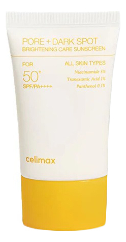 Крем для лица солнцезащитный Pore + Dark Spot Brightening Care Sunscreen SPF50+ PA++++ южнокорейской марки Celimax с осветляющим эффектом подходит всем. Нежная, в меру плотная консистенция легко наносится и отлично впитывается полностью, не оставляет разводов и ощущения липкости, помимо защиты от солнечных лучей, комплексно ухаживает за кожей и улучшает её состояние.
