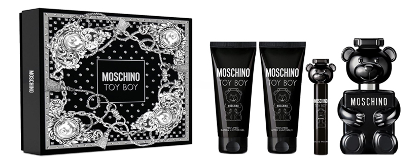 Toy Boy — элитная туалетная вода с цветочно-восточным ароматом для мужчин, созданная в 2019 году итальянской модной маркой Moschino. Дерзкий и провоцирующий аромат создан для современных, креативных молодых мужчин, которые обладают собственным модным стилем, что оригинально подчеркнуто в дизайне флакона, выполненного в виде стилизованной фигурки игрушечного медведя.Ироничный, страстный и сексуальный оттенок новой кожаной коллекции одежды бренда подчеркивают яркие свежие акценты бергамота, элеми и сладкой соблазнительной груши в обрамление пряно-специевых нот мускатного ореха и чувственного мускуса. «Сердце» парфюмерной композиции дышит изысканным душистым букетом медовой пьянящей розы, изысканной белой магнолии, душистого липового цвета и согревающих акцентов пряной гвоздики. Элегантный, благородный шлейф аромата дышит элегантными оттенками древесины кашмерана и бархатисто-сливочными акцентами экзотической древесины сандала.