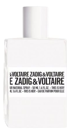 В 2016 году французским модным домом Zadig & Voltaire представлены две неповторимые стильные новинки This is Her и This is Him, под слоганом «This is Zadig!» По словам художественного директора компании Сесилия Бонстром, эти творения олицетворяют баланс между «чем-то действительно чистым и чем-то темным и мистическим."This is Her – передает своим чистым, упоительным, светлым звучанием элегантность и изысканный стиль современных молодых женщин. Он обладает чувственным и притягательным, восточно-гурманским характером и делает женский образ грациозным и чувственным.Аромат открывается сладостью амброво-бальзамического, с медовыми оттенками запаха жасмина самбака, с чуткими, пылкими, пикантными отголосками розового перца. Сердце аромата завлекает сладкими, гурманскими нотами ароматной ванили, нежностью взбитых сливок и ореховым, маслянистым запахом каштана. Завершающим штрихом парфюмерной композиции выступает сладкий, древесный, с бальзамическим-мускусным оттенком аромат сандала, который придает звучанию парфюмя исключительную мягкость, уют и элегантность.