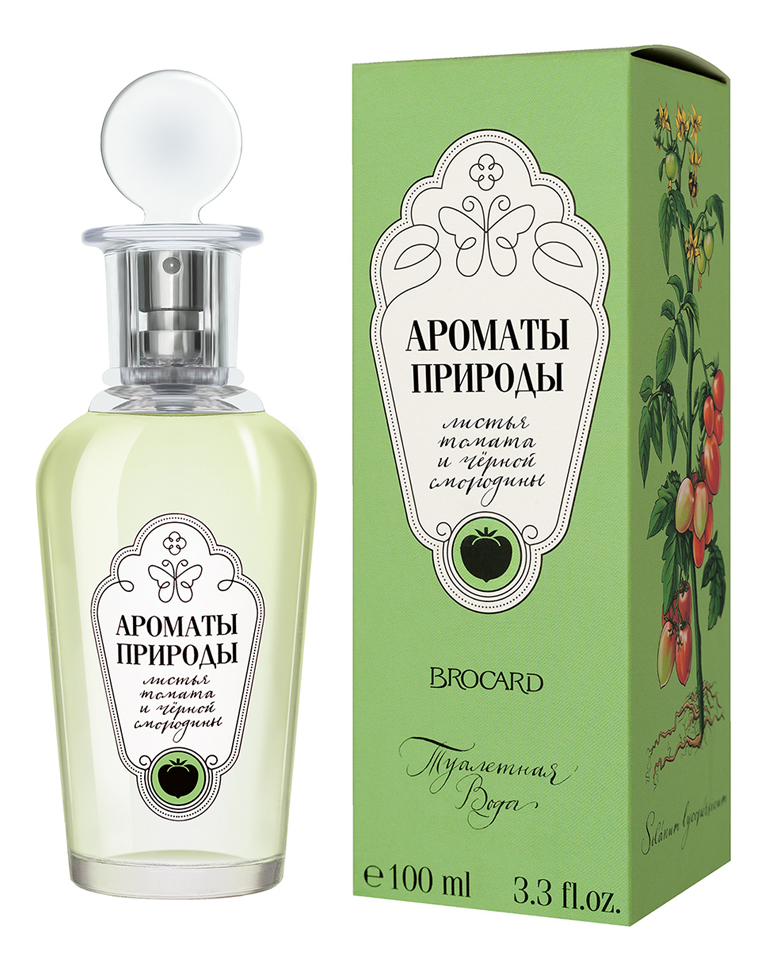 Listya Tomata I Chernoy Smorodiny - терпкий, пряный, насыщенный женский цветочно-зеленый аромат, выпущенный в 2017 году российским парфюмерным брендом Brocard в рамках парфюмерной коллекции «Ароматы природы». По замыслу парфюмеров, входящие в коллекцию ароматические композиции должны хранить в себе ароматы русской природы и солнечного лета и холодной зимой напоминать о цветах, спелых ягодах и сочных листьях, даря чудесное настроение.Ароматическая композиция «Листья томатов и черной смородины» основана на уникальном запахе листьев томата – терпких, чуть камфорных и при этом сладковатых. Он органично сочетается с чуть ягодным запахом листьев черной смородины и запахом спелой смородины. Пряно-медовый аромат жасмина, цитрусовая свежесть сладкого апельсина, душистая прохлада мяты и нежный мускус завершают ароматическую картину российского лета.