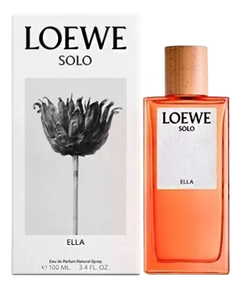 Solo Loewe Ella — парфюмерная вода класса люкс с цветочно-восточным ароматом для женщин, выпущенная в 2018 году испанским парфюмерным брендом Loewe. Безупречный волнующий, невероятно красивый и соблазнительный аромат Solo Loewe Ella обладает сильным жизнеутверждающим характером и сверкающей освежающей ароматической композицией, созданной с идеальным вкусом.Вкусным сочным фруктовым букетом сладкого хрустящего яблока, нежного душистого персика, соблазнительной груши и свежего цитрусового аккорда апельсина открывается аромат, наполняясь в «сердце» композиции изящными цветочными оттенками жасмина Самбак, утонченной нежной фиалки, бархатисто-пряной медовой розы, душистого воздушного апельсинового цвета, сладостным цветочно-ванильным акцентом гелиотропа и теплым пряным терпким аккордом зеленого чая. Элегантный шлейф парфюма Loewe Solo Loewe Ella сплетен из тонких благородных нот светлой древесины, сливочно-хвойного аккорда древесины кедра из Вирджинии и утонченными освежающими оттенками драгоценной амбры.