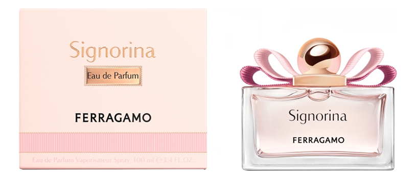 Salvatore Ferragamo Signorina (Сальваторе Феррагамо. Синьорина) это фруктово-цветочный аромат. Туалетная вода выпускается для женщин с 2011 года. Композиция наполнена восточными оттенками и сказочными фруктовым ароматом. В составе присутствуют ноты красных ягод, перца и других чарующих ингредиентов.Композиция символизирует современную романтическую девушку. Ноту «сердца» несёт звучание пиона, розы и жасмина. Флакон также выполнен оригинально – из толстого стекла с золотой крышечкой, которая словно купол, накрывает капельку востока. Salvatore Ferragamo Incanto Bliss также стоит оценить девушкам, которые на стороне романтики и чувственности.