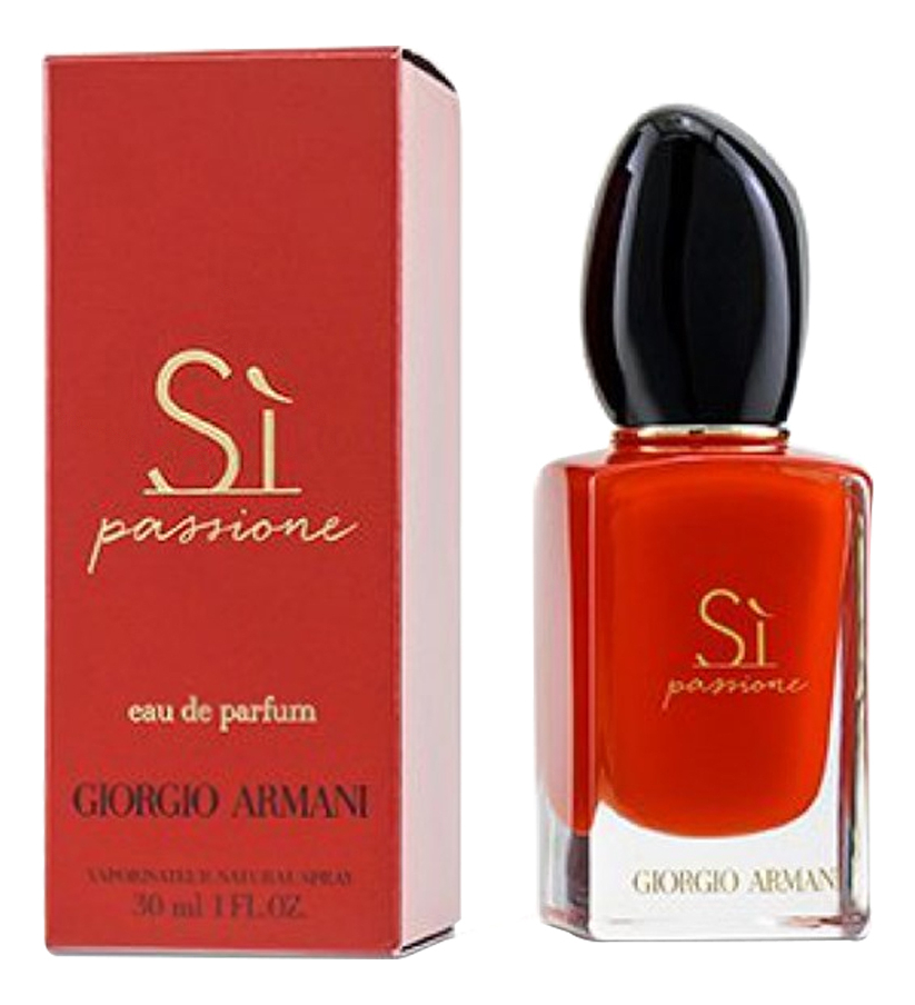 Si Passione – элитная парфюмерная вода с фруктово-цветочным ароматом для женщин, выпущенная в 2017 году знаменитым модным домом Armani из Италии. Роскошный аромат Si Passione – «сочетание силы, благодати и независимости духа», яркое воплощение образа абсолютно уверенной и страстной женщины, которая соблазняет и провоцирует, не оставляя равнодушным ни одного мужчину.Захватывающий мощный аромат высшего класса открывается сладкими фруктовыми нотами сочной душистой груши, пьянящих ягод черной смородины и свежим утонченным аккордом розового перца. Роскошное цветочное «сердце» композиции мягко струится оттенками изысканного белого жасмина, чувственной бархатисто-пряной медовой розы и сладостным цветочно-ванильным акцентом гелиотропа, которые страстно сплетаются в шлейфовых нотах парфюма Armani Si Passione с теплыми мягкими сливочно-хвойными оттенками древесины белого кедра и восточной интригующей пряно-сладкой капелькой ванили.Аромат Armani Si Passione заключен в оригинальный дизайнерский флакон, выполненный в виде стилизованного ярко-красного тюбика помады.