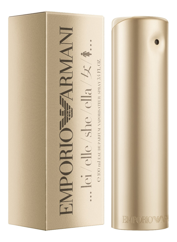 Emporio Armani She — яркий, сочный и многогранный женский восточно-цветочный аромат, выпущенный в 2020 году итальянским модным домом Giorgio Armani. Упрятанный в лаконичный золотистый цилиндрический флакон, парфюм отражает концепцию бренда, произведшую революцию в моде, доказав, что роскошное отнюдь не означает неудобное и тесное. Парфюм отличается сложностью и многооттеночностью и при этом мягко и органично вписывается в женский образ, внося в него новые оттенки и подчеркивая особый стиль своей хозяйки.В начале звучания парфюм дарит яркий коктейль освежающих цитрусовых нот и запах сочной медовой груши. Им на смену приходит пьянящий терпковато-медовый жасмин и пряный гелиотроп. Тонкие пряные акценты кардамона придают сердечному корду особую глубину и стиль. И все это ароматическое волшебство опирается на мягкую, уютную и гармоничную базу, сплетенную из хвойно-дымного бело кедра, горьковато-пряного миндаля, нежнейшего белого мускуса, утонченной сладости ванили и благородного чуть смолистого янтаря.
