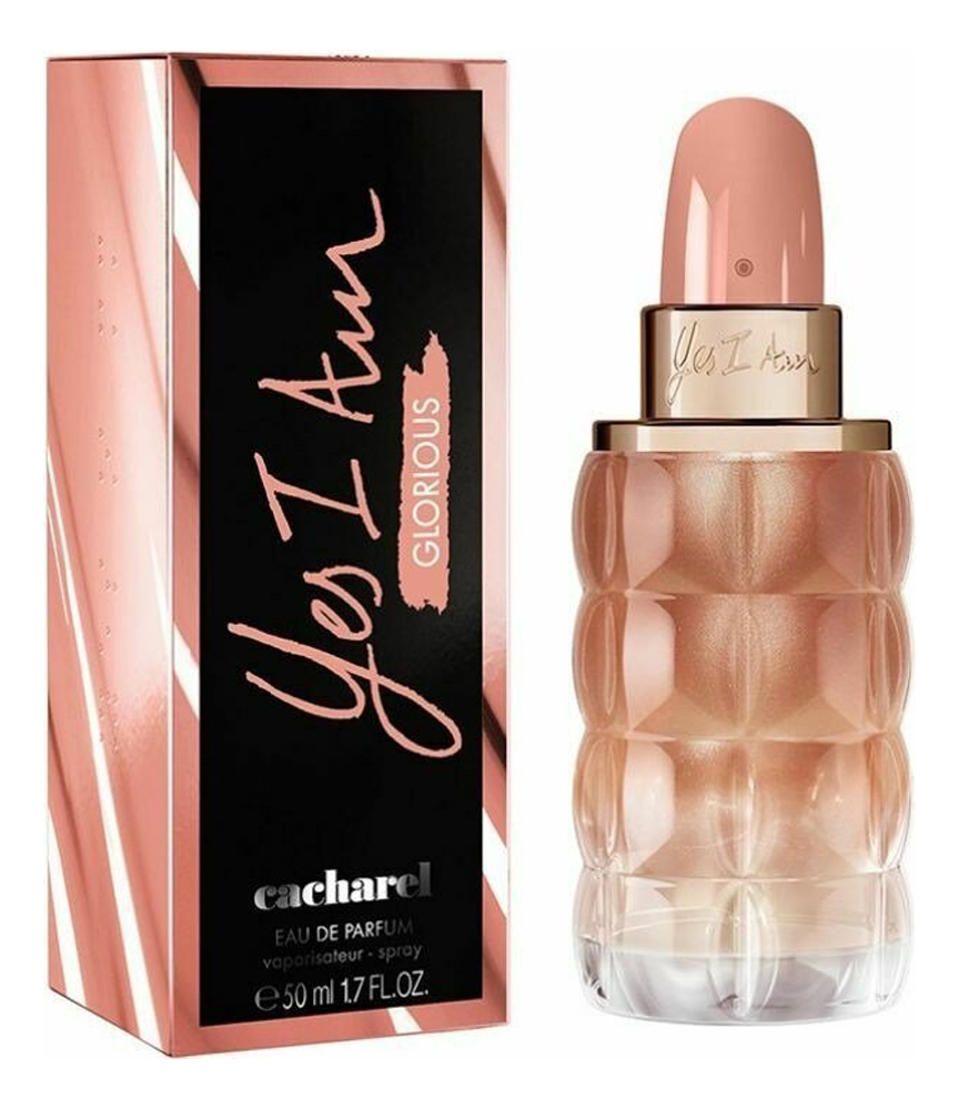 Yes I Am Glorious — яркий, дерзки и при этом утонченный и завораживающий женский цветочно-фруктовый аромат с мягкими сливочными оттенками, выпущенный в 2021 году. Парфюм выпущен в рамках серии Yes I Am и вдохновлен популярными новинками сияющего макияжа. Это аромат позитивной, аутентичной и сияющей женственности. Верхний аккорд парфюма дарит яркий и блистательный взрыв персикового сока, росой осевшего на лепестках белых цветов. Ароматная магнолия, гардения и плюмерия в сердце композиции дополнены изрядной порцией молочного коктейля с ванилью. Тепло древесных нот и бархатисто-сливочные оттенки сандала придают парфюму особую мягкость и красоту звучания.Парфюм Cacharel Yes I Am Glorious заключен во флакон в форме губной помады, который заново перевоплощается в образе виноградной грозди, подсвеченной исходящим изнутри мерцающим светом.