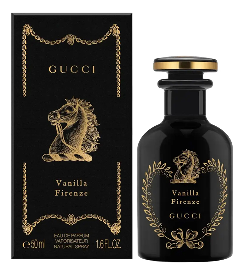 Поскольку аромат Gucci Vanilla Firenze отдает дань уважения Флоренции, городу, известному своим художественным наследием и утонченной элегантностью, его символом является голова запряженной лошади, изображение которой украшает флакон.
