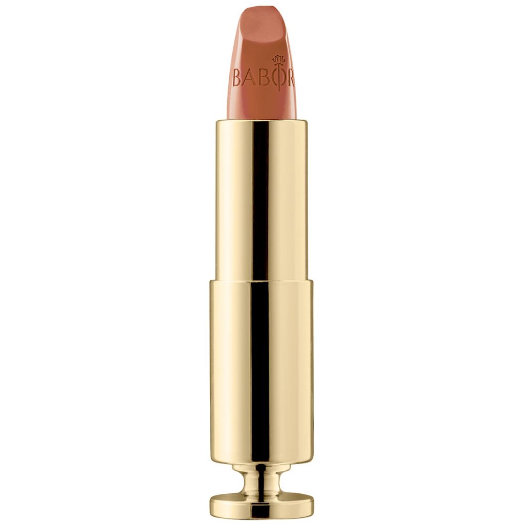 Увлажняющая кремовая помада с питательной текстурой для стойкого макияжа губ с глянцевым блеском.