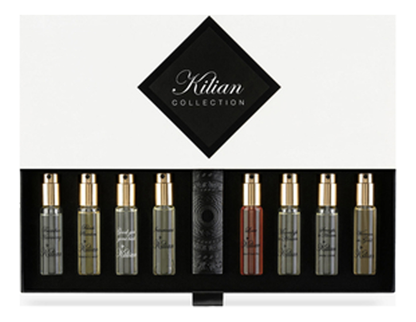 Kilian Discovery Set — уникальный парфюмерный набор с изысканными ароматами для женщин и мужчин от французского парфюмерного бренда Kilian.Парфюм Harmony of Bamboo — аромат абсолютной и утонченной мужской элегантности, который основан на изящном сплетении свежих цитрусовых аккордов бергамота, сладкого мандарина и апельсинового цвета. Средние ноты композиции звучат прохладой зеленых акцентов листьев бамбука и терпкостью зеленого чая, медовых сладких оттенков цветов мимозы и нежными специевыми нотами розового перца, которые завершаются чудесным восточным богатым пряно-специевым набором, акцентом душистого черного перца и запахом листьев пачули.Парфюм Black Phantom — восточный гурманский унисекс-аромат включает в себе ноты солнечного рома, сладкого сахарного тростника, теплые восточные оттенки шоколада и запах крепкого ароматного кофе, ноты карамели и миндаля, цветочно-ванильный запах гелиотропа и элегантный сливочный акцент древесины экзотического сандала.Парфюм Good Girl Gone Bad — женский цветочно-фруктовый аромат, который открывается изысканным цветочным букетом майской розы, жасмина и османтуса, сплетаясь в средних нотах композиции с чарующим запахом индийской туберозы и нарцисса. Завершается аромат утонченными оттенками амбры и сливочно-хвойным смолистым акцентом древесины белого кедра.Парфюм Entoxicated — фужерный пряный унисекс парфюм с лаконичной композицией, которая создана на основе сплетения ароматов кардамона и мускатного ореха, пряной корицы и душистого кофе.Парфюм Love Dont Be Shy — парфюмерная вода с восточным ароматом для женщин открывается изысканным запахом эфирного масла нероли, сплетаясь в нотах сердца с роскошным цветочным букетом жасмина, нежного пудрового ириса и пьянящей медовой непальской розы. Чувственный шлейф парфюма мягко звучит восточными оттенками ванили и мускуса.Парфюм Moonlight in heaven — это фужерный аромат для мужчин и женщин, который ярко стартует свежими нотами грейпфрута, лимона и нежного розового перца, насыщаясь в сердце композиции мягкими пудровыми акцентами риса, сладкого кокоса и манго. Ненавязчивый шлейф аромата соткан из восточных сладковато-горьких, чуть дымных, нот бобов тонка и древесного аккорда ветивера.Парфюм Straight to heaven white cristal — древесно-пряный унисекс-аромат включает в себя ноты мускуса, жасмина, пачули, вирджинского кедра, амбры, ванили, рома, мускатноо ореха и сухофруктов.Парфюм Woman in gold — шипрово-цветочный аромат для женщин открывается свежими нотами бергамота, мандарина и альдегидами, сплетаясь в сердце композиции с изящными цветочными оттенками белой фрезии, розы, герани и ванили. Шлейф парфюма мягко струится теплыми пряными нотами пачули, бобов тонка и ванили, которые гармонично усилены особой молекулой Акигалавуда.