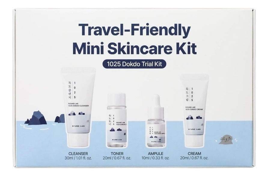 От производителя:Набор 1025 Dokdo Trial от Round Lab включает пенку, тонер, сыворотку и крем для лица с морской водой. Средства в мини-формате помогают познакомиться с уходом этой серии и незаменимы в дороге.