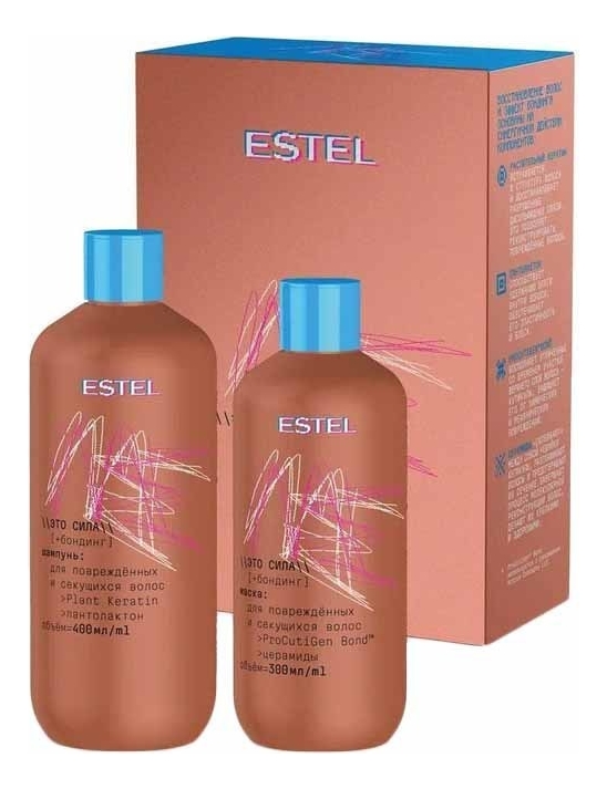 Набор для волос ME Это сила + бондинг от российского косметического бренда ESTEL способствует экспресс-восстановлению поврежденных и секущихся волос, позволяет достичь эффекта бондинга (восстановления нарушенных связей в структуре волос).